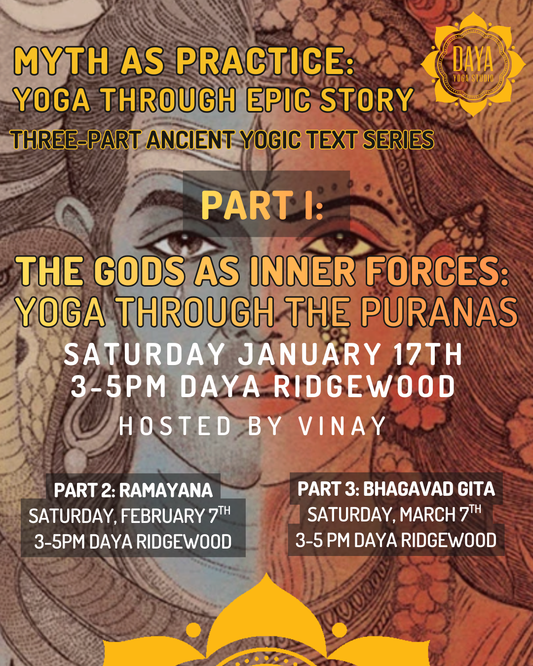 January's Purana workshop is called: The Gods as Inner Forces: Yoga Through the Puranas